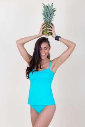 Looks like a regular swimsuit, it is a wireless, foam tankini top with wide, adjustable elasticated shoulder strap. Its special, concealed inner pocket provides suitable and stable support for the breast prosthesis.