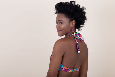 A foam-free, wired bikini top with neck tie straps which can shape beautifully thanks to its special cut-seam and special lining.